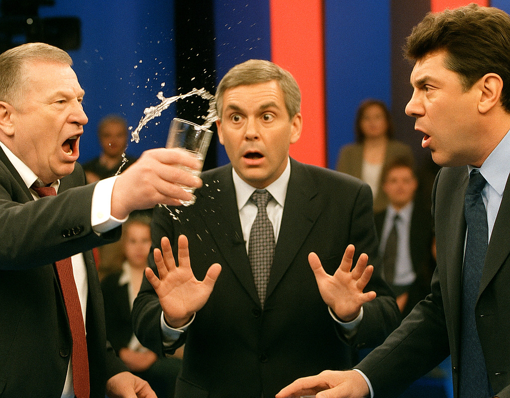 Жириновский понял: в новых условиях демократии побеждает не тот, кто умнее, а тот, кого чаще показывают в скандалах. Полетели разборки в прямом эфире. Люди прильнули к экранам: